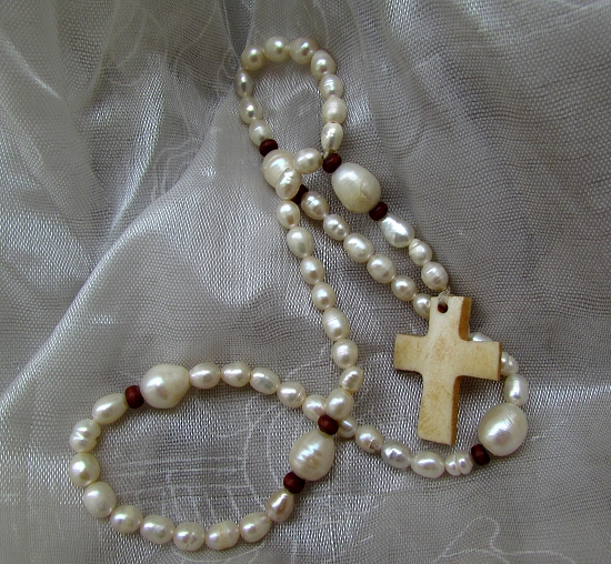 5 gros grains où est dit le "Notre Père ...". Les matériaux : Nous avons utilisés pour le plus gros stock l'os de yack qui est d'origine du Népal, solide et esthétique. Notre fournisseur de perles est à Kathmandu au Népal. Les chapelets de style indiens sont fabriqués à partir de perles en bois ou de graines, de nacre de coquillage. |