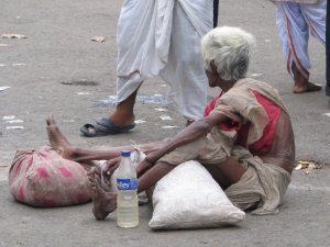 Pourquoi sont-ils là ? En général, les femmes ont été chassées par leur mari ou leur belle-famille, les vieilles femmes veuves ont été abandonnées par leurs enfants, les handicapés mentaux et/ou physiques sont un poids pour la famille, ils sont laissés à la rue pour survenir à leurs besoins seuls. Ils auront peut-être plus de chance de survivre que de rester avec les autres et mettre en péril le pauvre équilibre famillial. La perte de travail (pas de chômage), un accident empêchant de travailler, une cassure familliale, psychologique, peuvent être la cause de leur présence dans la rue. De nombreux enfants vivent dans les gares, ramassant les bouteilles d'eau laissées par les voyageurs et qu'ils revendent au recyclage pour 50 ct ou 1 Rs. Ils vivent en bande, plus ou moins bien. Les actions auprès d'eux est plus complexes (ils arrivent à se nourrir, ils ne sont pas seuls ou rarement, ils se droguent quasiment tous à la colle, ...) et il est préférable de travailler avec des organismes en place (par exemple Don Bosco). Pour tous ces gens, savoir s'ils ont fait les efforts nécessaires pour s'en sortir ou non, s'ils ont cherché leur pauvreté ou si elle a été subie, est une question qui ne se pose pas ! Le but n'est pas de connaître leur vie ou de la juger, ni même de prévoir une réinsertion.